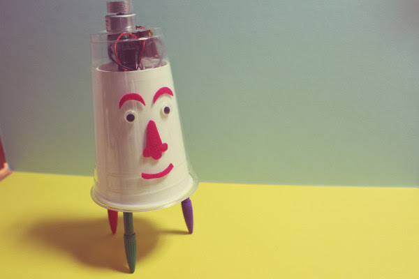 준비물 : 컵2개, 리모트 송신기&수신기, 진동모터, AAA건전지2개, 사진엔 없지만 펜이랑 테이프도 필요해요. 투명한 컵의 윗면에 칼로 구멍을 내고 진동모터 전선을 통과시킵니다. 모터밑면에 양면테이프로 고정시켜줬어요. 리모트 수신기는 이렇게 생겼구요. 요거랑 위의 진동모터를 연결합니다. 어떻게? 바로 이렇게! 빨강선은 빨강선끼리, 검은선은 검은선끼리 만나게 쏙 끼워줘요. 이건 리모콘이예요. 왼쪽 버튼을 누르면 왼쪽으로 돌고 오른쪽 버튼을 누르면 오른쪽으로 돌지요~ 3V전지로 작동됩니다. 남은 컵 안쪽에 테이프로 펜 3개를 붙여서 고정시킵니다. 아무펜이나 붙여도 되는데 싸인펜류가 그림이 잘 그려지더라구요. 그런 다음 컵 2개를 겹치면 완성이예요. 크기가 다른 컵 2개를 이용해서 윗부분에 부품이 놓일 공간을 있어요. 로봇이니만큼 AI를 생각하며 눈코입을… 컵이 하얀색이니까 그림을 그려줘도 좋을 것 같아요. 이 녀석이 그린 그림이랍니다. 다음글이 없습니다.이전글이 없습니다.댓글