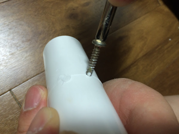 T관의 중앙에 볼트가 들어갈 구멍을 뚫어주세요. 전 마침 드릴피스가 떨어진 관계로 수작업으로.