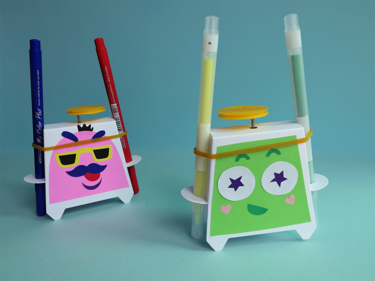 메이크메리의 전자미술공작소 | 편심력을 이용한 그림그리는 드로잉봇 만들기 전개도에 그림을 그리고 모터를 붙여 스스로 그림그리는 드로잉봇을 만들어 봐요. 키트 구입은 네이버 스토어에��