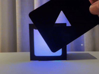 상자 속 도형 카드 및 다양한 물체를 향해 비춰보세요